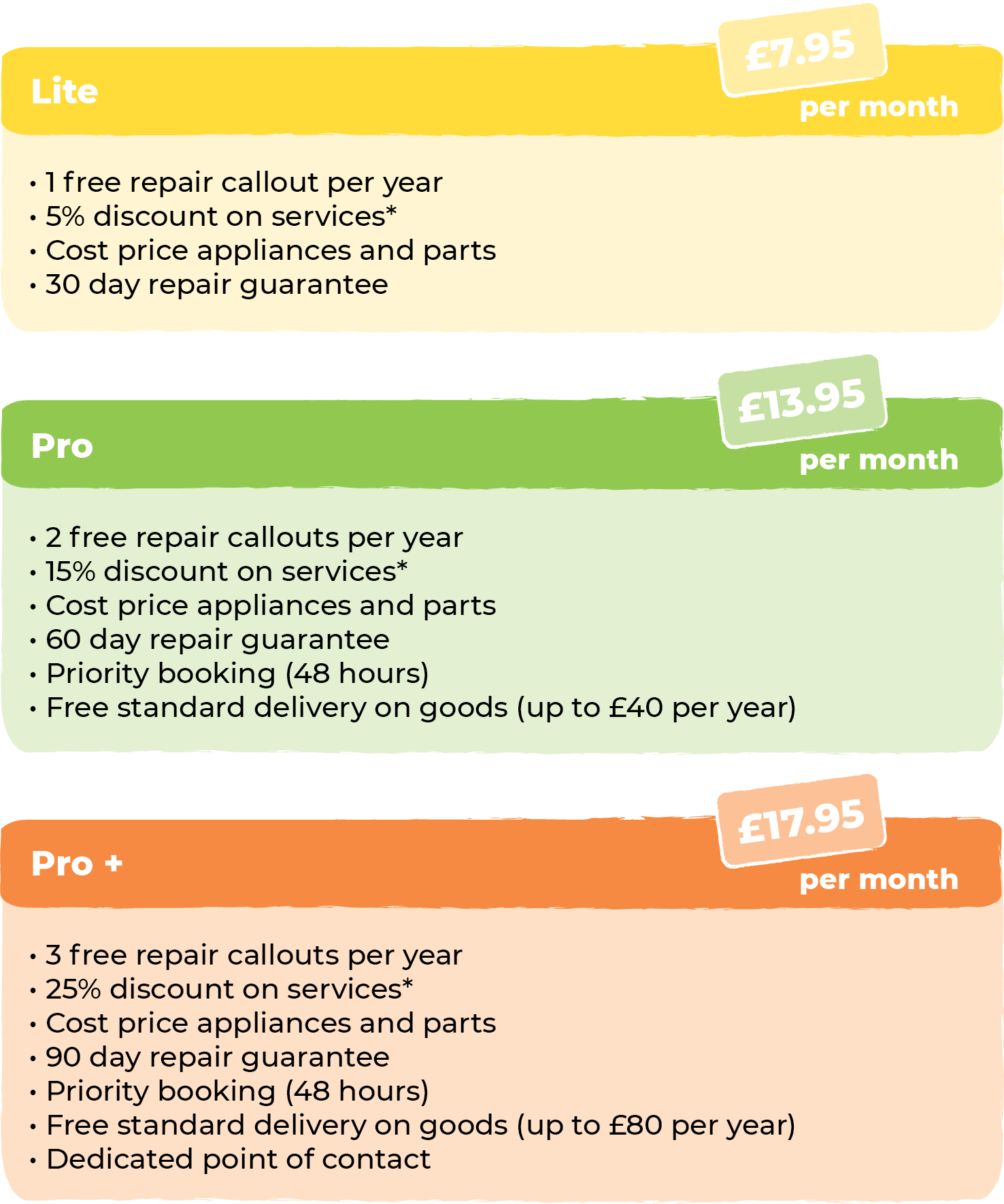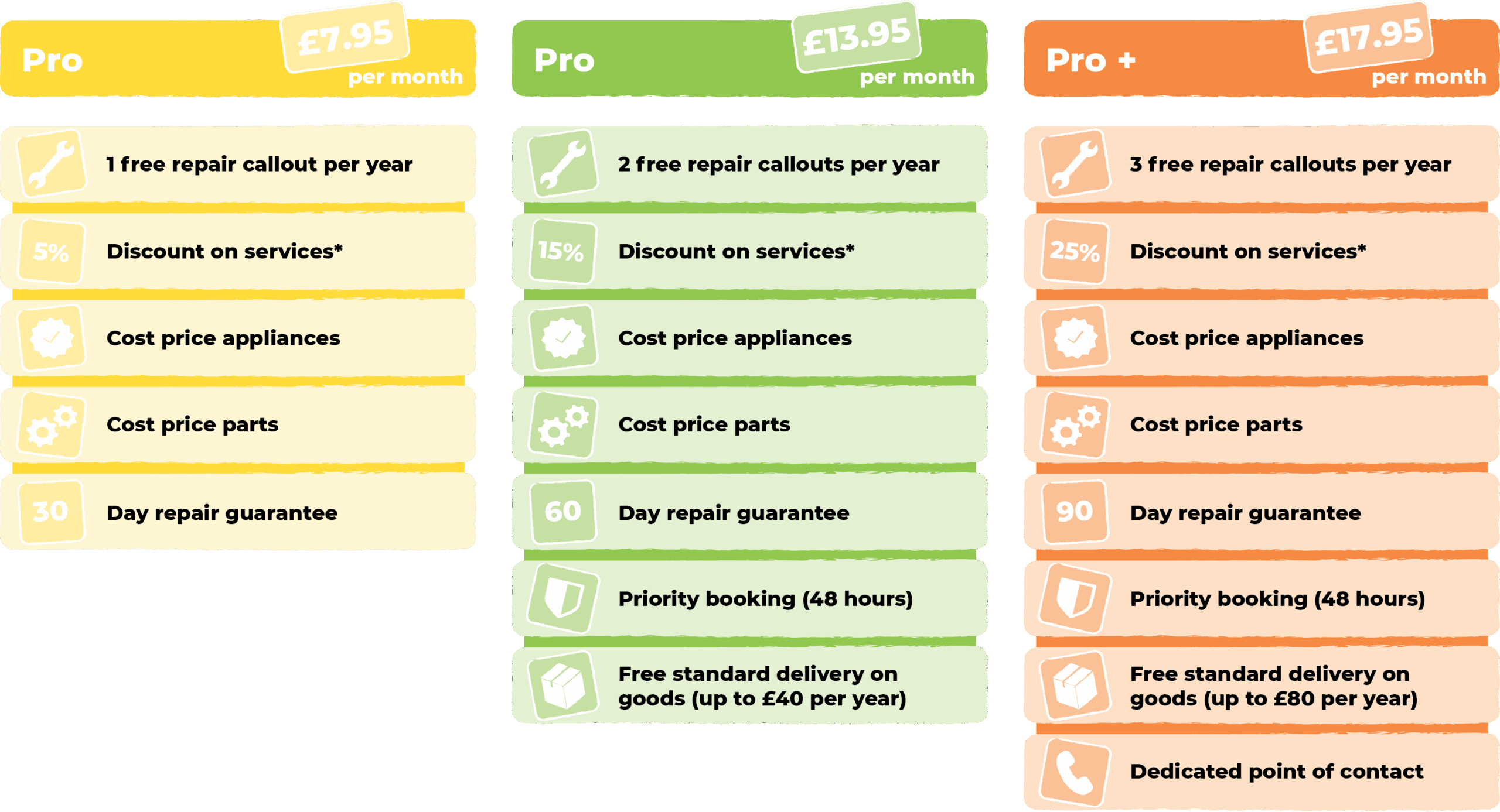 Turn your callouts into an introduction to wider support for your customers. Give them support for ALL their large kitchen appliances*.